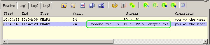 4. A record is shown in "Real Time" Window, have following stream "Input File > Input Page > Output Page > Output File"