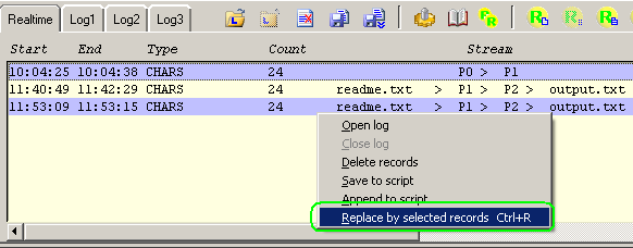 By clicking different record in realtime window, you can find the different change detail in the bottom window.