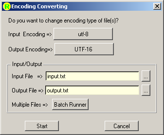 * User should select Input Encoding and Output Encoding