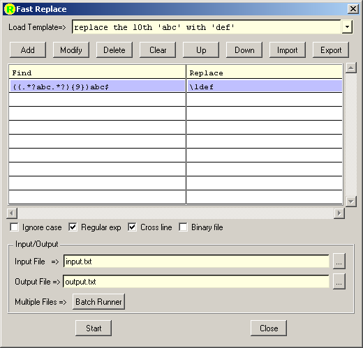 * For both "single file" and "multiple file" fast replace, please refer to Fast Replace Operations for detail.