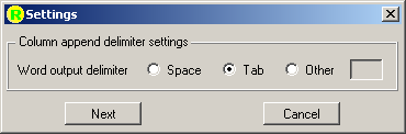 <<< Save to files -- Split by Column--> Will split current page into many columns, and save each column into a file