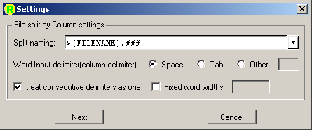 For detail about file spliting, refer to Spliting output text into multi-files(Horizontal and Vertical).