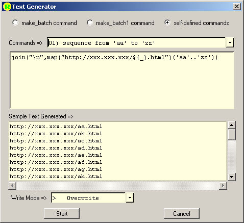 By writing self-defined string expressions under "Commands" entry, user can get desired output text.