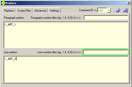 Line Number Filter is to limit the replace scope to the specified No. of matched line pattern.