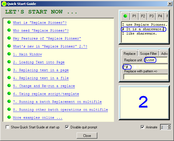 3. Quick Start Guide => launch Quick Start page of Help, user can check/uncheck "Show Quick Start Guide on Start" in the bottom of Quick Start Guide window, user can also enable/disable quit prompt at the window.
