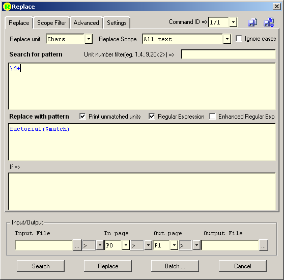 For example, here we have defined function factorial, we can replace number in text with their factorials: