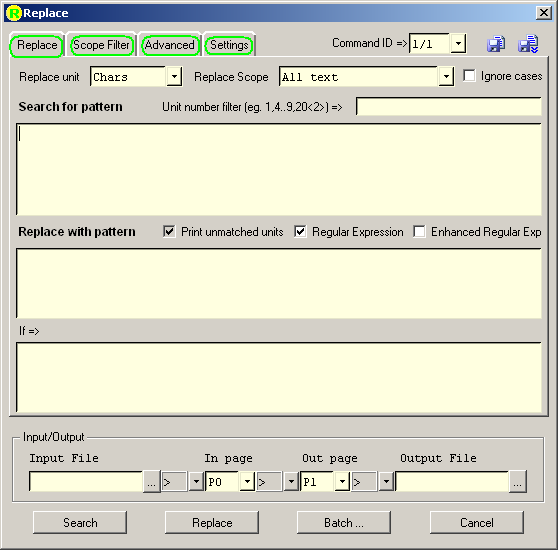 By clicking "Replace", "Replace by selected records", "Replace by script", "Replace by template" user will be brought to this dialog:
