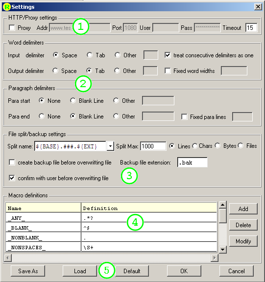 5. Save/Load/Default/OK/cancel buttons