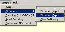 1. Click Dictionary button or Tools/Dictionary Menu, there are 3 sub-menu: Dictionary Import/Dictionary Export/Clear Dictionary